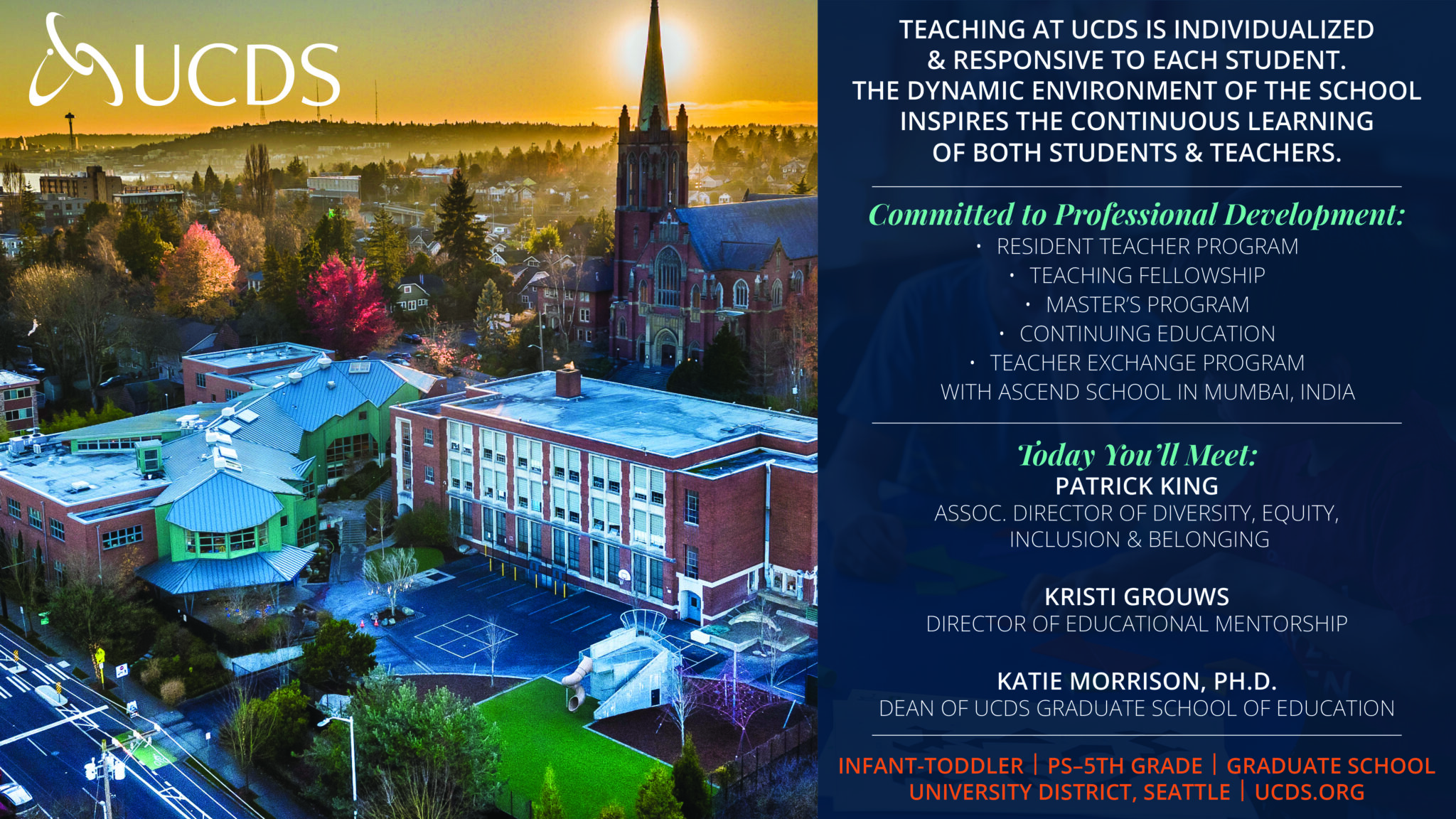 Attendees will check in, attend an opening session, and then hear from diversity practitioners about working in independent schools. Following, attendees will have opportunities to walk around and meet with hiring representatives from the participating schools at their tables.